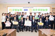 한국시사경제 경북취재본부 | 구미시는 지난 27일 구미농협과 제주 위미농협이 고향사랑기부제 활성화와 지역 간 상생협력을 위해 각각 1,000만 원을 상호기부했다고 밝혔다. 이번 기부는 양 농협 임직원 각 100여 명이 자발적으로 참여해 마련됐다. 단순한 기부를 넘어 지역 간 응원과 교류를 확대하는 데 의미를 더했다. 양 기관은 지난해 6월 도·농 상생 자매결연을 체결한 이후 꾸준한 협력 관계를 이어오고 있다. 이날 기탁식에는 김장호 구미시장을 비롯해 이전광 구미농협 조합장, 현재근 위미농협 조합장, 이승철 농협중앙회 구미시지부장, 여창훈 농정지원단장과 양측 임직원, 남원읍장 등 20여 명이 참석해 고향사랑기부제의 취지와 성과를 공유했다. 이전광 구미농협 조합장은 “올해 상호기부의 첫 출발을 함께해 뜻깊다”며 “농협의 우수 농·축산물이 답례품으로 제공되는 만큼 기부 참여 확산에 힘을 보태겠다”고 말했다. 김장호 구미시장은 “먼 길 마다하지 않고 함께해 주신 제주 위미농협의 적극적인 참여에 감사드린다”며 “구미와 제주가 교류를 확대해 농촌에 활력을 불어넣고 지역경제에도 긍정적인 변화를 만들어가길 기대한