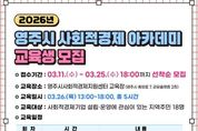 한국시사경제 경북취재본부 | 영주시와 영주시사회적경제지원센터는 신규 사회적경제기업 발굴 및 육성을 위해 '2026 영주시 사회적경제 아카데미' 교육생을 3월 11일부터 25일까지 모집한다. 이번 아카데미는 사회적경제기업 설립과 운영에 관심이 있는 지역 주민과 기관·단체를 대상으로 선착순 18명을 모집하며, 교육은 3월 26일 오후 1시부터 6시까지 총 5시간 과정으로 영주시사회적경제지원센터 교육장(영주시 중앙로 7, 2층)에서 진행된다. 교육은 사회적경제 분야 전문강사를 초빙해 △사회적경제의 이해 △사회적경제기업가 특강 △사회적기업/협동조합 설립 절차 등의 내용으로 진행된다. 또한, 교육 이후에는 신청자를 대상으로 사회적경제기업 설립을 위한 1:1 맞춤형 컨설팅을 제공하여 사회적경제기업 설립 전반을 체계적으로 지원할 예정이다. 아카데미 모집과 관련한 자세한 사항은 영주시사회적경제지원센터 홈페이지에서 확인할 수 있으며, 참여를 희망하는 경우 3월 25일까지 포스터 내 QR코드(네이버폼) 또는 유선 신청을 통해 접수하면 된다. 정교완 일자리경제과장은 “이번 아카데미가 사회적경제에 대한 이해