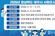한국시사경제 경북취재본부 | 시민의 생활 수준과 사회 인식을 종합적으로 파악해 정책 수립의 기초자료로 활용하기 위한 ‘2026년 경상북도·영주시 사회조사’가 실시된다. 조사 기간은 3월 11일부터 27일까지 17일간이며, 표본으로 선정된 영주시 내 936가구의 가구주와 만 15세 이상 가구원을 대상으로 진행된다. 조사는 시에서 채용한 조사원이 대상 가구를 직접 방문해 면접 방식으로 실시한다. 조사항목은 총 12개 부문 51개 문항으로 구성된다. 이 가운데 44개 문항은 경상북도 공통 항목이며, 7개 문항은 영주시 특성을 반영한 항목으로 전통시장 개선 사항과 시정의 우선 중점 추진 분야 등이 포함된다. 조사 과정에서 수집된 개인정보는 '통계법' 제33조(비밀의 보호)에 따라 철저히 보호되며, 통계 작성 목적 외에는 사용되지 않는다. 조사 결과는 오는 12월 영주시청 누리집을 통해 공표될 예정이며, 지역 균형 발전과 복지 시책 추진 등 시정 정책 수립을 위한 기초자료로 활용될 예정이다. 김한득 홍보전산실장은 “사회조사 결과는 시민의 삶의 질과 지역 현황을 파악하는 중요한 자료가