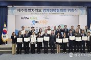 한국시사경제 경제팀 | 제주특별자치도는 11월 11일 오전 10시20분, 도청 탐라홀에서 ‘제주특별자치도 경제정책협의회 위촉식’을 개최했다. 이번 위촉식은 경제정책협의회 기존 위원의 임기 만료에 따라, 신규 및 연임 위원을 포함한 총 30명(위촉식 21, 당연직 9)으로 재구성함으로써 제주경제의 지속가능한 성장 전략을 논의할 협의체를 새롭게 출범시키기 위한 자리다. 경제정책협의회는 '제주특별자치도 경제정책협의회 조례'에 따라 설치된 자문기구로 제주도의 주요 경제정책 수립 및 지역 산업 육성방안에 대한 자문과 협의 기능을 수행한다. 위원장은 오영훈 제주특별자치도지사가 맡으며, 부위원장을 포함한 30명 이내의 위원으로 구성된다. 위촉위원은 경제‧산업‧금융‧연구‧관광‧1차산업‧소상공인 등 각 분야의 학식과 경험이 풍부한 전문가들로 위촉됐으며, 임기는 2년이며 1회에 한해 연임이 가능하다. 또한 협의회는 지역경제 주요시책 및 지역경제 활성화 방안에 관한 논의, 지역경제 활성화를 위한 기관 및 단체간 협의・조정 기능 등을 수행하게 된다. 이날 위촉식에는 행정부지사가 참석해 위촉위원