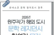 한국시사경제 권충언 기자 | 유네스코 문학 창의도시인 원주시는 지역 문학인의 창작활동 지원과 국제 교류 확대를 위해 ‘원주작가 해외 도시 문학 레지던시’ 참여 희망 작가를 4월 30일까지 모집한다. 이번 모집은 향후 해외 문학 도시와의 일대일 상호 교환 레지던시 추진에 대비해 참여 의사가 있는 원주 작가 인력풀을 구성하기 위한 것이다. 시는 지원서를 사전 제출한 작가를 우선 검토하고, 실제 교환 레지던시 추진 시 선발에 우대할 계획이다. 모집 대상은 시, 소설, 어린이 동화, 그림책 등 문학 분야 활동 작가로, 작품 활동 경력이 있으며 원주시 출신 또는 원주에 거주하거나 직장·작업실이 있는 자이다. 또한 해외 문학 도시 및 예술인과의 네트워킹에 관심이 있고, 문화 행사·교류·인터뷰·축제 등에 적극 참여할 수 있는 작가를 우대한다. 중급 이상의 외국어 의사소통 능력 보유자 및 출판 경력자는 가점 대상이다. 향후 레지던시 작가로 선발되는 경우 항공료가 지원되며, 초청 도시에서 숙박 시설이 제공된다. 레지던시 기간 중 창작된 작품은 원주시 유네스코 창의도시 홍보를 위해 전시·게재될 수 있으며, 번역본 제작 지원도 가