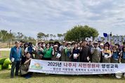 한국시사경제 권충언 기자 | 전라남도 나주시는 지난 27일, 영산강 지방정원에서 ‘2025년 나주시 시민정원사 양성과정’ 수료식을 가졌다. 이날 수료식에는 수료생 31명이 참석했으며 교육과정을 마친 시민정원사들이 의미 있는 결실을 보았다. 이번 교육은 나주시 교육지원과 평생교육팀, 동신대학교 평생교육원, 나주시 영산강르네상스추진단이 공동으로 운영한 프로그램으로 ‘영산강 지방정원: 회복력과 도시재생의 정원으로’를 주제로 7월부터 9월까지 총 10주 동안 진행됐다. 교육 과정은 이론, 실습, 토론을 균형 있게 결합하여 진행됐으며 영산강 지역의 토양 이해, 지형 및 식물군락 설계, 물길 관리 등 다양한 내용을 다뤘다. 특히 지역 특성에 맞는 생태적이고 문화적인 정원 설계 기술을 심도 있게 전달하며 시민정원사로서 필요한 전문 지식을 쌓을 기회를 제공했다. 수료생들은 선진지 견학을 통해 지방정원과 개인정원의 조성 및 관리에 대한 생생한 현장을 경험했고 전문가들로부터 실질적인 조언과 세밀한 디테일도 배울 수 있었다. 현장 실습은 영산강 정원 부지 내에 한반도 연못과 인접한 공간에 직접