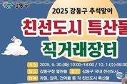 한국시사경제 권충언 기자 | 강동구는 2025년 추석을 맞이해 오는 9월 30일과 10월 1일 이틀간 강동구청 열린뜰에서 ‘친선도시 특산물 직거래장터’를 개최한다고 29일 밝혔다. 이번 행사는 강동구가 전국 지자체와 맺은 교류 협력을 바탕으로, 지역 농가의 판로 확대와 도농 상생을 도모하기 위해 마련됐다. 올해 새롭게 친선결연을 맺은 강원도 영월군을 포함해 총 21개 국내 도시가 참여하며, 직접 산지에서 올라온 35개 농가가 다양한 특산물을 선보일 예정이다. 특히 원주 찐빵, 홍천 한과, 거창 곶감, 의성 복숭아, 완도 미역 등 전국 각지에서 올라온 신선하고 품질 좋은 농특산물을 시중가 대비 최대 40% 저렴한 가격에 구매할 수 있어 구민들의 많은 관심이 기대된다. 이번 장터는 9월 30일 오전 10시부터 오후 6시까지, 10월 1일 오전 9시부터 오후 5시까지 운영되며, 누구나 자유롭게 방문해 구매 가능하다. 이수희 강동구청장은 “이번 직거래장터는 구민들에게는 믿을 수 있는 먹거리를 제공하고, 참여 농가에는 안정적인 판로를 마련해주는 뜻깊은 행사”라며, “앞으로도 친선도시와의 협력을 통해 지속 가