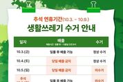 한국시사경제 권충언 기자 | 경산시는 추석 연휴기간 중 시민불편을 최소화하기 위해 9월 22일부터 10월 9일까지 “생활쓰레기 처리 종합대책”을 추진한다고 29일 밝혔다. 시는 추석 연휴 전까지 환경정비를 실시하여 배출된 쓰레기는 전량 수거 처리할 계획이다. 연휴 기간 중 시청 종합상황반과 읍‧면‧동 기동 청소반을 설치하고 쓰레기 수거 5개 권역 대행업체도 긴급운영반을 편성‧운영해 긴급한 쓰레기 민원을 신속히 처리하여 시민 불편이 발생하지 않도록 관리할 방침이다. 또한, 쓰레기 처리시설 및 수거 대행업체 휴무로 연휴 기간 중 10월 5일부터 10월 6일은 쓰레기 수거가 중단됨에 따라 이날 발생된 쓰레기는 가급적 배출을 자재하고 가정에 보관했다가 수거 전날에 배출해 줄 것을 당부했다. 특히, 추석 다음 날 쓰레기가 한꺼번에 몰려 배출될 것이 예상됨에 따라 쓰레기 수거 5개 업체에서 청소 인력과 장비를 총동원하여 쓰레기를 전량 수거‧처리할 예정이다. 시 관계자는 “추석 연휴가 개천절 및 한글날을 포함해 7일간 지속됨에 따라 쾌적하고 깨끗한 명절 분위기 조성을 위해 무단투기를 자재하고 각 가정에서도 쓰레