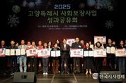 한국시사경제 권충현 기자 | 고양시지역사회보장협의체는 지난 11일 고양어울림누리 별모래극장에서 ‘2025년 고양특례시 사회보장사업 성과공유회’를 개최하고, 올 한 해 추진한 사회보장사업의 주요 성과와 우수사례를 시민과 함께 공유했다. 이날 성과공유회에는 이동환 고양특례시장과 김운남 고양특례시의회 의장을 비롯한 지역 국회의원, 도의원, 문화복지위원회 시의원, 사회복지시설 종사자, 동 지역사회보장협의체 위원, 복지담당 공무원, 지역주민 등 300여 명이 참석해 한 해 동안의 민관협력을 통한 사회보장 성과를 공유하고 격려하는 시간을 가졌다. 사회보장사업 성과공유회는 동 지역사회보장협의체, 민관 기관, 복지시설 등 다양한 주체들이 함께 참여해 민관협력의 성과를 확인하고, 향후 다양한 주체 간 연계·협력을 통해 지역사회 복지 기반을 더욱 공고히 하는 행사이다. 이번 행사에는 고양시 사회보장 활성화를 위해 복지현장에서 헌신적으로 활동한 유공자에 대한 고양시장 및 고양시의회 의장의 표창과 함께 2025년 동 행정복지센터 복지업무 평가 결과에서 우수한 성과를 거둔 12개 우수동에 대한 시상이 진행돼 사회보장 현장의 사기를 한