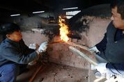 한국시사경제 권충현 기자 | 제54회 강진청자축제가 오는 21일 개막을 앞두고 있는 가운데 12일 전남 강진군 대구면 고려청자박물관 제2호 가마에서 도공들이 전통 방식을 그대로 재현하며 소나무 장작을 이용해 불을 지피고 있다. 1300°C의 온도로 정성껏 불을 지펴 구워진 청자는 오는 22일 세상의 빛을 보게 된다.