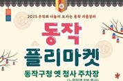 한국시사경제 권충현 기자 | 동작구가 오는 11월 1일 오전 10시부터 오후 5시까지 구청 옛 청사 주차장(노량진역 5번 출구)에서 ‘2025 추억과 나눔이 오가는 동작 가을장터’를 연다고 밝혔다. 이번 행사는 주민과 단체가 직접 참여하는 ‘플리마켓’과 김장철 맞이 ‘직거래장터’를 한자리에서 즐길 수 있도록 기획됐다. 먼저 플리마켓은 약 30개 부스에서 의류, 도서, 소품 등 다양한 중고 물품을 판매하며 일상 속 자원순환 문화를 실천하는 장으로 마련된다. 직거래장터에서는 자매결연 도시 등에서 들여온 김장철 필수 품목(배추, 무, 고춧가루 등)과 지역특산물이 시중가보다 최대 33% 저렴하게 판매된다. ▲축산물 타임세일(11시·13시·15시) ▲선착순 증정품 지급 ▲당일 배달서비스(박스 단위, 관내 한정) ▲칼갈이 부스(인당 2개, 개당 100원) 등 다양한 이벤트도 진행된다. 아울러 주민들이 즐길 수 있는 ‘체험 프로그램(한지 무드등·편백 향낭 만들기 등)’과 구청 직원이 참여하는 ‘사랑 나눔 바자회’도 운영된다. 바자회 수익금은 동작복지재단 등에 후원금으로 활용될 예정이다. 이와 함께