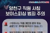 한국시사경제 기동취재팀 | # 최근 서울 소재 A업체는 가스누설감지기 등을 남품해 달라는 요청을 받았다. 주문자는 양천구청 재무과 소속 진△△ 주무관이라고 자신을 소개하고 견적서와 함께 특정 B업체에서 대리납품하라고 요청했다. 수상함을 느낀 A업체가 재무과 진△△ 주무관을 찾아 문의하니 ‘납품을 요청한 사실이 없다’는 답이 돌아왔다. 양천구(구청장 이기재)는 최근 양천구청 직원을 사칭해 물품대금 선입금을 요구하는 사기 범죄가 급증함에 따라, 유사 피해가 발생하지 않도록 각별한 주의와 함께 선제적인 피해 예방에 나선다고 4일 밝혔다. 최근 사칭 사기범들이 조달청 나라장터와 서울시 계약마당 등에 게시된 관·내외 업체의 계약 이력을 악용해 실제 계약 발주를 가장한 뒤, 물품 대리구매를 명목으로 대금 선입금을 요구하는 사례가 잇따르고 있다. 특히, 실제 구청 직원의 소속과 성명을 사칭해 계약 발주의 진위 여부를 쉽게 판단하기 어렵게 만드는 등 범행 수법이 날로 정교해지고 있다. 한편, 구는 지난 1년간 공무원 사칭 사기 시도 사례 50여 건을 확인했다. 이 중 대부분은 업체가 사전에 의심해 구에 사실 여