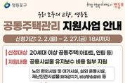 한국시사경제 기동취재팀 | 영등포구가 공동주택 주민의 쾌적하고 안전한 생활여건 조성을 위해 ‘2026년 공동주택관리 지원사업’을 추진한다고 밝혔다. ‘2026년 공동주택관리 지원사업’은 관내 공동주택관리법의 적용을 받는 20세대 이상 공동주택을 대상으로 공용시설물의 유지관리에 필요한 사업비를 지원하는 사업이다. 구는 올해 총 9억 원의 예산을 투입해 관내 공동주택 단지별로 필요 사업비의 50~70% 이내, 최대 5,000만 원까지 지원할 계획이다. 지난해 구는 공동주택관리 지원사업으로 67개 단지에 83개 사업을 지원했다. 특히 위험수목 전지, 경로당 개보수, 어린이놀이시설 개보수 등을 통해 안전사고 예방은 물론 사회적 약자와 소외계층의 주거환경 개선에 기여했다. 올해는 지난해 대비 1억 원 확대된 예산을 바탕으로 입주민의 안전 확보와 함께 사회적 약자 및 소외계층을 지원한다. 주요 지원 분야는 ▲노인 편의시설 및 여가시설 설치·보수 ▲장애인 편의시설의 설치·개선 ▲공동주택 근로자 근무환경 개선(냉·난방기, 공기청정시설, 화장실·샤워실 개선 등) ▲보수‧보강이 필요한 공동주택 시설물 개선 사업 등이다. &nbs