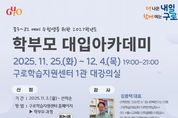 한국시사경제 기동취재팀 | 구로구가 예비 수험생 학부모를 대상으로 ‘2027학년도 학부모 대입 아카데미’를 운영한다. 구는 변화하는 대입 제도와 입시 환경 속에서 학부모가 정확한 정보를 이해하고, 자녀의 진로·진학을 체계적으로 지원할 수 있도록 매년 학부모 대입 아카데미를 운영하고 있다. 교육은 구로구 관내 예비 수험생(중학교 3학년∼고등학교 2학년)을 둔 학부모 50명을 대상으로 구로학습지원센터 1관 대강의실에서 진행된다. 이번 프로그램은 △11월 25일 ‘고교학점제 대비 및 2028학년도 대입 제도 분석’ △11월 27일 ‘학종 성공을 위한 과목 선택과 내신 1등급 만들기 공부 비법’ △12월 2일 ‘2027학년도 대입 전형의 이해와 수시모집 성공전략 세우기’ △12월 4일 ‘주제탐구활동을 하면 학생부가 왜 특별해 보일까?’ 등 총 4회에 걸쳐 매회 오후 7시부터 9시까지 2시간 동안 이어진다. 강의는 진학 멘토 ‘신의 한 수’ 입시전략연구소 김용택 대표가 나서 학부모가 자녀와 함께 실천할 수 있는 현실적인 진학 지도 방안과 대입 준비에 필요한 핵심 정보를 전달할 예정이다. 참여를