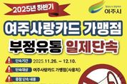 한국시사경제 기동취재팀 | 여주시는 지역화폐인 여주사랑카드의 부정유통 근절을 위해 지난 11월 26일부터 오는 12월 10일까지 집중 단속에 나선다고 밝혔다. 주요 단속 대상은 ▲ 물품의 판매 또는 용역의 제공 없이 지역화폐를 수취·환전하는 행위 ▲ 실제 매출금액 이상의 거래를 통하여 지역화폐를 수취·환전하는 행위 ▲ 가맹점이 등록 제한업종을 영위하는 경우 ▲결제를 거부하거나 다른 결제 수단에 비해 불리하게 대우하는 행위 ▲기타 단속이 필요성이 있다고 인정되는 경우 등이다. 이번 일제 단속은 가맹점 데이터 목록을 참고 및 주민 신고 등을 토대로 의심되는 현장을 방문해 확인하는 방식으로 진행된다. 여주시 일자리경제과 관계자는 “지역화폐 제도의 지속가능성, 신뢰성을 확보하고 지역 자금의 역외유출 방지를 위해서는 여주사랑카드 사용자와 가맹점주 모두 함께 힘을 합쳐야 건전한 유통 문화를 만들어갈 수 있다”협조를 당부했다. 부정유통 적발 시 여주사랑카드 가맹점 등록취소, 관계 법령에 따라 최대 2,000만원 이하의 과태료가 부과될 수 있으며, 위반행위 조사를 거부·방해 또는 기피하는 경우에도 최대 500만원