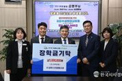 한국시사경제 김숙영 기자 | 김제사랑장학재단은 19일 김제수산업협동조합(조합장 김영주)과 새만금장례식장(대표 김덕운)이 지역 인재 육성을 위한 장학금으로 각각 500만 원과 300만 원을 기탁했다고 밝혔다. 김제수산업협동조합은 지난해부터 꾸준히 김제사랑장학재단에 장학금을 기탁하며, 지역사회의 미래를 함께 키워가는 사회공헌 활동을 이어오고 있다. 김영주 조합장은 “김제 청소년들이 더 넓은 세상에서 꿈을 펼칠 수 있도록 작은 응원이지만 마음을 담아 전한다”며 “앞으로도 지역과 함께 성장하며 다양한 나눔을 실천하겠다”고 말했다. 새만금장례식장 김덕운 대표는 “나눔은 지역사회를 밝히는 가장 따뜻한 빛”이라며 “김제 학생들이 경제적 부담 없이 학업에 전념할 수 있도록 정성을 보탰다”고 밝혔다. 정성주 김제사랑장학재단 이사장은 “김제를 사랑하는 마음으로 두 기관이 꾸준히 나눔을 실천하는 모습은 지역사회에 큰 본보기가 된다”며 “이 장학금은 김제의 미래 인재들이 꿈을 향해 나아가는 든든한 밑거름이 될 것”이라고 감사의 뜻을 전했다. 한편, 김제사랑장학재단은 2007년 설립 이후 ‘내 고장 학교 보내