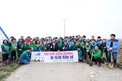 한국시사경제 김태훈 기자 | 논산시가 본격적인 영농철을 앞두고 3일 채운면 장화리 일원에서‘논도랑 치는 날’캠페인을 전개했다. 이번 캠페인에는 백성현 논산시장을 비롯해 장화리 마을 주민 65명, 한국농어촌공사 직원 25명, 시 관계자 20명 등 총 100여 명이 참여해 영농 준비를 위한 구슬땀을 흘렸다. ‘논도랑 치는 날’은 개인 농경지 주변 소규모 용·배수로에 쌓인 퇴적물과 잡풀을 정비해 물길을 확보하는 활동이다. 큰 배수 시설뿐 아니라 실제 물 흐름을 좌우하는 논도랑을 정비함으로써 집중호우 시 발생할 수 있는 농경지 침수 피해를 줄일 수 있을 것으로 기대된다. 특히, 이날 현장에는 한국농어촌공사 논산지사(소장 서봉수) 직원들이 대거 동참해 기술적인 지원과 일손을 보탰으며, 주민들도 자발적으로 참여해 마을의 안전을 함께 지키는 공동체 의식을 다지는 계기가 됐다. 작업복 차림으로 현장을 찾은 백성현 논산시장은 주민들과 함께 직접 삽을 들고 논도랑 퇴적물을 정리하며 현장의 의견을 들었다. 백 시장은“논도랑 치기는 농촌의 생명길인 물길을 열어 재해로부터 안전한 논산을 만드는 첫걸음”이라며,