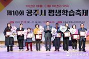 한국시사경제 김태훈 기자 | 공주시는 지난 8일 행복누림 대강당에서 ‘제10회 공주시 평생학습축제’ 개막식을 열었다. (사진제공) 이번 축제는 ‘10년의 배움, 다음 10년의 약속’을 주제로, 시민이 함께 배우고 성장하는 ‘평생학습도시 공주’의 10주년을 기념하는 뜻깊은 자리였다. 개막식은 평생학습 유공자 표창 수여, 기념 영상 상영, 10주년 퍼포먼스, 평생학습동아리 공연 등 다채로운 프로그램이 진행됐다. 올해 축제는 총 62개 프로그램으로 구성돼 ▲체험·홍보 부스 23개 ▲공연·전시 부스 23개 ▲친환경 체험 7개 ▲일일 체험 9개 등 다양한 시민 참여형 프로그램이 운영됐다. 특히 새롭게 문을 연 행복누림 공간을 활용해 1층은 친환경 체험존, 2층은 평생학습 기관 및 동아리 전시존, 3층은 체험·홍보존, 5층은 공연 및 개막식 무대로 꾸며져 시민 누구나 즐기며 배움의 가치를 체험할 수 있는 공간으로 조성됐다. 박동진판소리꿈나무의 식전 공연으로 축제의 막을 올렸으며, 공주대학교 평생교육원, 공주청년센터, 공주시장애인종합복지관 등 다양한 기관이 참여해 공주시 전역의 평생학습 성과를 공유