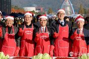 한국시사경제 김태훈 기자 | 대전시의회 조원휘 의장은 12일 엑스포시민광장에서 개최된 제17회 따뜻한 겨울나기 김장 대봉사에 참석해 새벽부터 이어진 자원봉사자들의 따뜻한 손길과 미소에 희망을 더했다. 이날 행사는 지역을 대표하는 단체·기관장, 사회공헌 협약기관·단체, 자원봉사자 등 800여 명이 참석한 가운데 대전사랑운동센터장과 자원봉사연합회장의 대회사를 시작으로 주요내빈 인사말씀, 김장시연, 후원금 전달식 등 순으로 진행됐고, 김장 김치는 세대당 10kg씩 저소득 소외계층 5,500세대에 전달될 예정이다. 조원휘 의장은 “추운 계절, 이웃의 밥상에 온기를 더하기 위해 이른 새벽부터 달려와 주신 800여 명의 자원봉사자분들께 깊은 감사의 마음을 전하고, 여러분들의 따뜻한 손길과 미소는 대전의 사랑 온도를 한층 높였다”면서, “오늘 정성껏 버무린 김치는 겨울철 가장 든든한 반찬으로, 지친 이웃들에게 매서운 겨울바람을 녹이고 따뜻한 밥상과 희망을 선사하는 소중한 선물이 되길 소망한다”고 말했다.