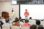 한국시사경제 김태훈 기자 | 금산포럼 농업발전위원회(위원장 김영수)가 주최한 제25차 금산포럼이 ‘금산농업, 미래를 설계하다’ 주제로 지난 27일 금산군 농업기술센터 2층 대회의실에서 개최됐다. 이날 유수영 금산포럼 기획실장의 사회로 행사가 진행됐으며 박범인 금산군수, 김호택 금산포럼 이사장, 김영수 금산포럼 농업발전위원장, 김민규 충남대 동물자원생명과학과 교수를 비롯해 금산군 농업단체장들이 참석했다. 김창식 금산군청 농정과장이 금산군 농업정책을 발표하고 김민규 교수가 금산군 인삼약초 분야 그린바이오사업 도입 필요성을 발표해 참석자들로부터 많은 호응을 이끌어 냈다. 이어, 김영수 위원장이 좌장을 맡아 토론을 진행해 금산군 농업단체장들의 금산군 농업 발전에 대한 제언 및 의견을 청취하는 시간을 가졌다. 김호택 이사장은 “포럼을 통해 많은 농업 정책이 수립되기를 기대한다”며 “금산군의 지역 및 농업 발전을 위해 포럼에서도 많은 노력을 하겠다”고 말했다. 박범인 금산군수는 “이번 포럼을 통해 금산군 농업 발전에 기여될 수 있는 뜻깊은 자리가 만들어졌다”며 “포럼에서 나누는 지혜와 실천 방안이
