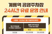 한국시사경제 김태훈 기자 | 계룡시는 오는 9월부터 계룡역 공영주차장을 유료로 전환해 본격 운영에 들어간다고 밝혔다. 이번 유료화 조치는 무분별한 장기 주차와 무단 주차로 인한 시민 불편을 해소하고, 주차장의 효율적 운영과 질서 있는 이용을 유도하기 위해 추진된다. 시는 관련 조례 정비와 행정예고 등 행정 절차를 모두 마치고 운영 준비를 완료한 상태다. 유료화가 적용되는 계룡역 공영주차장은 두마면 두계리 134-1번지에 위치해 있으며, 총 113면(3,829㎡) 규모다. 또한, 주차장은 ‘1급지’로 분류되며 주차 관제 시스템을 도입해 전문 업체를 통한 위탁 방식으로 운영된다. 주차 요금은 30분당 500원으로 책정하고 초과 이용 시에는 30분 이후부터 10분당 200원이 추가되며, 2시간을 초과하면 10분마다 300원이 부과된다. 아울러, 월 정기 주차권은 주간 기준 4만 5천 원, 야간은 3만 5천 원으로 운영될 예정이다. 계룡시 관계자는 “공영주차장 유료화를 통해 장기주차를 억제하고 앞으로 더 많은 시민이 불편함 없이 이용할 수 있는 주차 환경을 조성하겠다”
