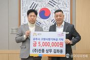 한국시사경제 김태훈 기자 | 공주시는 지난 11일 ㈜진풍 김좌용 상무가 고향사랑기부제에 동참하며 3년 연속 고액 기부를 이어갔다고 밝혔다. 고향이 사곡면 월가리인 김좌용 상무는 이날 시청 상황실을 방문해 고향사랑기부금 500만 원을 최원철 시장에게 전달했다. 김 상무는 2023년 500만 원, 2024년 300만 원에 이어 올해까지 총 1,300만 원의 기부금을 공주시에 기탁했다. 김좌용 상무는 “고향인 공주에서 받은 사랑을 다시 돌려드릴 수 있어 기쁘다”며 “앞으로도 고향의 발전에 조금이나마 힘이 되길 바라는 마음으로 꾸준히 기부를 이어가겠다”고 말했다. 최원철 시장은 “3년 연속 고향사랑기부를 실천해 주신 김좌용 상무께 깊이 감사드린다”며 “소중한 기부금은 시민 복지와 지역 발전을 위해 투명하고 의미 있게 활용하겠다”고 밝혔다. 한편, 2025년부터 고향사랑기부제 개인별 연간 기부 한도가 기존 500만 원에서 2,000만 원으로 상향됐다. 공주시는 고향사랑기부로 조성된 기금을 활용해 ‘고향 부모님 이불빨래 대행사업’, ‘취약계층 어린이 영구치 치료 지원’ 등을 추진했으며