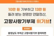 한국시사경제 김태훈 기자 | 부여군은 모빌리티 플랫폼 티머니(Tmoney)GO와 고향사랑기부제 민간 플랫폼 위기브(wegive)가 함께 8월 22일부터 9월 30일까지 특별 제휴 이벤트를 진행한다고 밝혔다. 이번 행사는 위기브를 통해 부여군에 고향사랑기부를 한 참여자를 대상으로 한다. 참여자 전원에게는 티머니GO 5천 마일리지가 1인 1회 한정으로 지급된다. 마일리지는 8월 27일부터 10월 1일까지 매주 수요일 순차적으로 발송되며, 세제 혜택과 답례품 외에도 일상에서 활용할 수 있는 교통 혜택이 더해진다. 부여군은 이번 협업이 ‘고향사랑기부제 참여가 단순히 세액공제나 답례품에 머물지 않고, 생활 속 혜택으로 이어지는 계기’가 될 것으로 기대한다. 특히 민간 플랫폼 위기브와 협력을 통해 참여자들이 더욱 편리하게 기부에 동참할 수 있도록 지원하고, 티머니GO와 제휴를 통해 교통 분야에서도 보상을 제공하게 됐다. 부여군 관계자는 “부여군에 기부해 주신 모든 분께 감사드리며, 참여자들이 실질적인 만족을 얻을 수 있도록 다양한 혜택을 마련해 나가겠다.”라고 말했다. 한편, 고향사랑