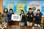 한국시사경제 노승선 기자 | 제주도교육청 태흥초등학교는 17일 아나바다 장터 판매 수익금 30만1500원을 해양시민과학센터 ‘파란’에 후원금으로 전달했다. 이번 후원금은 지난 9월 서귀포시 남원읍 태흥2리 마을회관에서 열린‘태흥2리 맛있는 음악회’ 행사에서 태흥초등학교 학생자치회와 학부모회가 운영한 아나바다 장터의 판매 수익금으로 마련됐다. 학생과 보호자가 함께 바다 환경 보호의 뜻을 모아 지역사회와 연계한 나눔의 교육적 가치를 실천한 의미 있는 활동이다. 한편 해양시민과학센터 ‘파란’은 해양생태계 변화를 기록·추적하며 제주 바다의 온전한 회복을 위해 기후위기 대응, 생물다양성 보호, 해양보호구역 확대와 관리, 시민과학 기반 해양생태계 기록 등 다양한 활동을 펼치고 있는 단체다. 오정미 교장은 “학생과 보호자가 함께한 정성이 제주 바다의 회복을 위한 뜻깊은 활동으로 이어져 매우 의미 있다”라며 “앞으로도 마을과 함께 성장하고 해양 환경의 가치를 실천하는 교육을 꾸준히 이어가겠다”라고 말했다.
