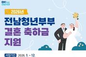 한국시사경제 문화팀 | 전라남도는 청년부부의 결혼 초기 경제적 부담 완화와 전남 지역 정착 유도를 위해 ‘청년부부 결혼축하금’ 200만 원을 지원한다. 청년부부 결혼축하금 지원사업은 전남도가 2021년 전국 광역시·도 최초로 시행했다. 지원 대상은 혼인신고일 현재 49세 이하 부부다. 신청일 직전까지 전남에 6개월 이상 주소를 둬야 한다. 혼인신고 후 6개월이 지난 날부터 1년 6개월 이내 신청 가능하며, 신청한 달의 다음 달 15일에 받을 수 있다. 결혼축하금은 주소지 관할 읍면동 행정복지센터를 방문해 신청하거나 전남 아이톡에서 온라인으로 접수하면 된다. 전남도는 올해부터 청년부부 중 1명이 외국인이면 신청 기간을 기존 ‘혼인신고일’ 현재 1년 6개월 이내에서 ‘결혼비자 발급일’ 현재 1년 6개월 이내로 변경했다. 결혼비자 발급까지의 기간과 실질적 혼인생활 개시 기간의 격차를 줄여 결혼 초기 외국인 배우자의 안정적 정착을 지원하겠다는 취지로, 다문화 가구의 지역사회 유입을 촉진하는 정책 마중물 역할을 할 것으로 기대된다. 전남도는 청년부부 결혼축하금 외에도 출