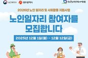 한국시사경제 문화팀 | 광주광역시는 노인공익활동사업, 노인역량활용사업 등 ‘2026년 노인일자리 사업’ 참여자를 12월 1일부터 12일까지 모집한다. 광주시는 2026년 노인일자리사업에 1574억원의 예산을 투입해 3만6440명의 어르신에게 일자리를 제공하며, 5개 자치구와 5개 시니어클럽 등 72개 일자리 수행기관에서 다양한 사업을 추진한다. 모집인원은 사업유형별로 ▲노노케어 등 노인공익활동사업 2만6479명 ▲보육시설보조 등 노인역량활용사업 6038명 ▲매장운영 등 공동체사업단 2754명 ▲민간업체 취업지원(취업알선형) 사업 1169명이다. 모집대상은 광주시 거주 어르신으로, 노인공익활동사업은 65세 이상(일부 60세 이상) 기초연금수급자 등 기준을 충족한 어르신이다. 노인역량활용사업은 65세 이상(일부 60세 이상), 공동체사업단·취업지원(취업알선형)은 60세 이상 어르신이 신청할 수 있다. 단, 국민기초생활보장법의 생계급여 수급자, 국민건강보험 직장가입자, 장기요양보험 등급판정자(1~5등급), 다른 부처 일자리 사업 참여자 등은 모집 대상에서 제외된다. 신청은 신분증·주민등록등본