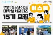 한국시사경제 사회팀 | 부평구 청소년수련관이 오는 31일까지 지역 내 청소년들을 위해 활동할 대학생 서포터즈 ‘이스트’ 10기 신규단원을 모집한다. 청소년활동과 봉사활동에 관심 있는 20~24세 대학생 또는 청년이면 ‘이스트’에 누구나 지원할 수 있다. 2026년 기준 대학 입학 예정자도 신청할 수 있다. 참여 희망자는 오는 31일까지 수련관 누리집을 참고해 온라인 신청서를 제출하면 된다. 수련관은 신청서 접수 후 다음달 14일 면접을 거쳐 신규단원을 최종 선발할 예정이다. 제15기 대학생서포터즈는 청소년활동 프로그램 기획과 운영을 비롯해 청소년활동 업무 지원, 전문교육 참여 등 다양한 활동을 수행하게 된다. 활동 실적이 우수한 단원에게는 수상 혜택도 주어진다. 모집과 관련한 자세한 사항은 부평구 청소년수련관으로 문의하면 된다.