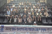 한국시사경제 사회팀 | 수원시 영통구는 지난 25일, 수원시미디어센터에서 2025년 청소년지도위원 역량강화 교육 및 간담회를 진행했다. 이번 행사에는 영통구 청소년지도위원, 학교사회복지사, 동 행정복지센터 청소년 담당자 등 50여명이 참석했다. 이날 교육은 영통구 산남초등학교, 청명초등학교 학교사회복지사 2명이 학교사회복지사들의 활동 소개 및 사례 발표를 시작으로 영화 '우아한 거짓말' 관람을 통해 딱딱한 교육에서 벗어나 시각적으로 공감하는 교육을 진행하여 청소년지도위원들이 자연스럽게 학교폭력 예방 필요성에 대한 경각심을 가지고 소통과 공감이 중요함을 다시 한 번 깨우치는 뜻 깊은 시간을 가졌다. 영화 상영 후에는 청소년지도위원과 학교사회복지사 간의 간담회를 통해 상호 협업 방안을 논의하고 현장의 청소년 문제에 대한 고민도 나누었다. 안효상 가정복지과장은 “청소년지도위원들의 노고에 항상 감사드린다. 앞으로도 각종 캠페인과 청소년 유해환경 업소 계도 뿐만 아니라 따뜻한 눈빛과 손길로 청소년들이 건강하게 성장할 수 있도록 함께해 주시길 바란다”고 말했다.