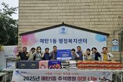 한국시사경제 사회팀 | 25일 수원특례시 영통구 매탄1동은 추석 명절을 맞이하여 관내 저소득층 300여 세대에 후원물품을 전달하는 이웃돕기 나눔 전달식을 개최했다. 이번 추석 명절 이웃돕기 후원은 매탄1동 9개 단체(주민자치회, 통장협의회, 방위협의회, 바르게살기위원회, 새마을지도자협의회, 매탄136자율방범대, 지역사회보장협의체, 매1사랑장학후원회, 구매탄시장상인회)에서 성금 170만원을 기부해 이루어졌다. 이날 전달식에 참석한 매탄1동 9개 단체에서는 전달식 종료 후 직접 대상자 가정으로 찾아가 후원물품을 전달했으며 어르신의 건강과 안부를 살폈다. 매탄1동 주민자치회 좌성태 회장은 “지역 내 소외된 가구들을 위해 앞으로도 지역사회와 함께하는 이웃나눔 활동을 이어가겠다”고 말했다. 김은정 매탄1동장은 “어려운 시기에도 한결같이 후원해 주시는 단체와 후원자분들에게 감사드리며, 관내 취약가구 대상자 모두가 따듯한 명절을 맞이할 수 있도록 노력하겠다” 고 말했다.