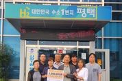 한국시사경제 사회팀 | K-55 한미 부동산 협의회는 지난 24일 평택시 신장1동 관내 소외계층을 지원하기 위해 추석맞이 이웃돕기 성금 100만 원을 기부했다. 기부한 성금은 관내 도움의 손길이 필요한 저소득층에게 생활비 등으로 지원될 예정이다. 남상한 K-55 한미 부동산 협의회 회장은 “추석을 맞아 소외된 이웃들을 도울 수 있어 기쁘게 생각하며, 협의회 회원들과 함께 앞으로도 선행을 계속 실천하겠다”라고 전했다. 황정희 신장1동장은 “어려운 시기에 따뜻한 마음을 베풀어 주신 한미 부동산 협의회 회장님과 회원분들에게 감사드리며, 기부한 성금으로 저소득층 지원을 통해 따뜻한 신장1동을 만들겠다”라고 밝혔다.