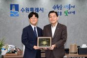 한국시사경제 사회팀 | 미국 아리조나한인회 임애훈 한인회장이 25일 수원시청을 방문해 이재준 수원시장에게 감사패를 전달했다. 아리조나는 수원시의 국제자매도시인 피닉스시가 있는 주다. 아리조나주 한인회는 “2024년 피닉스시 방문을 인연으로, 한인회 주요 행사마다 축하 인사와 격려를 통한 이재준 시장님의 관심과 따뜻한 성원은 교민 사회 연대를 굳건히 하고, 조국에 대한 애국심을 고양하는 데 큰 힘이 됐다”며 “아리조나주 한인사회를 대표해 교민들 정성을 모아 존경과 감사의 마음을 전달한다”고 밝혔다. 수원시와 피닉스시는 2021년 10월 자매결연을 했다. 2024년 1월 피닉스시를 방문한 이재준 시장은 아리조나한인회와 함께 ‘아리조나 한국전 참전비’를 참배하고, 아리조나한인회와 간담회를 했다. 이날 간담회에는 한국전 참전용사 1명이 함께했다. 임애훈 회장은 이날 아리조나주 마크 켈리(Mark Kelly) 상원의원의 친서를 이재준 시장에게 전달했다. 마크 켈리 의원은 친서에서 “아리조나는 피닉스와 수원이 자매도시로서 쌓아온 굳건하고 변함없는 우정을 소중히 여기고 있다”며 “수원시의 지속적인 번영과 수원·