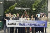한국시사경제 사회팀 | 수원특례시가 중소벤처기업부가 주관한 벤처창업진흥 유공 포상에서 ‘우수정책입안단체’로 선정돼 중기부 장관상을 받았다. 시상식은 27일 경기창조경제혁신센터에서 열린 ‘2025 경기 딥테크 스타트업 FLEX’ 행사 중 열렸다. 수원시는 창업지원센터 운영, 수원기업새빛펀드 조성, 중소·벤처기업 자금지원 등 다양한 창업·기업 성장 정책을 운영해왔다. 먼저 2012년 개소한 창업지원센터를 중심으로 창업기업 689개사를 보육하고, 1133억원의 누적 매출, 208억원의 투자유치를 달성했다. 관내 창업보육센터와 3D프린터 특화형 1인 창조기업센터 운영을 지원해 2024년 한 해 동안 230여개 기업을 지원해 고용 801명, 매출 660억원, 투자유치 136억원 등의 성과를 이뤘다. 또 기술력은 있지만 자금력이 부족한 중소·벤처·창업기업이 성장할 수 있도록 투자하는 펀드 ‘수원기업새빛펀드’도 2023년 11월 출시된 1차 수원기업새빛펀드는 3149억 원이 조성됐고, 수원 기업 투자액은 315억 4000만 원(총 19개사)에 달했다. 2차 펀드 조성을 위해 지난 10월 20일에는 8개 운용사와 업무협약을