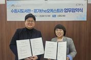 한국시사경제 사회팀 | 수원시도서관은 경기더(the)오케스트라는 20일 수원시 도서관사업소에서 업무협약을 체결하고, 공공도서관을 중심으로 한 시민 참여형 문화예술 프로그램 운영에 협력하기로 했다. 협약에 따라 양 기관은 ▲수원시 공공도서관에서 클래식 공연 공동 추진 ▲시민 아마추어 오케스트라의 공연 운영 지원 ▲가족·청소년·일반 시민 대상 비영리 공연 ▲도서관 특성과 운영 여건을 반영한 맞춤형 공연 협력 등에 힘을 모은다. 수원시는 자료 제공 중심 공간이었던 공공도서관의 기능을 문화·예술·커뮤니티를 아우르는 열린 문화공간으로 확장하고, 시민이 일상에서 자연스럽게 공연 콘텐츠를 접할 수 있도록 도서관 기반 문화예술 프로그램을 꾸준히 확대해 나갈 계획이다. 경기더(the)오케스트라는 2022년 창단된 수원 기반 시민 아마추어 오케스트라다. 클래식을 사랑하는 다양한 연령과 직업의 시민 단원 35명이 활동하고 있다. 지역사회에 클래식 음악을 보급하고, 생활문화 동호회 활성화에도 이바지하고 있다. 이날 협약식에는 최현주 수원시 도서관사업소장과 허석환 경기더(the)오케스트라 지휘자, 김서현 단무장 등이 참석
