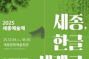 한국시사경제 세종취재분부 | 2025 세종예술제 ‘세종, 한글 세계로’가 1일부터 5일까지 세종시청과 세종문화예술회관 일원에서 열린다. 올해 예술제는 세종시 주최, ㈔한국예술문화단체총연합회 세종시연합회가 주관하며 ‘세종, 한글 세계로’를 주제로 진행된다. 예술제 기간 세종의 일상과 풍경, 도시가 품은 이야기를 예술 언어로 재해석한 다양한 작품을 만나볼 수 있다. 먼저 미술·사진·문인협회가 함께한 연합전시회는 1일부터 5일까지 세종시청 로비에서 진행된다. 이곳에는 세종의 빛과 결, 곳곳의 풍경을 각자의 시선으로 담아낸 60명의 참여 작가 작품이 전시된다. 오는 4일 오후 6시 30분부터는 국악·무용·연예예술인·음악협회가 참여하는 본 공연이 세종문화예술회관에서 펼쳐진다. 특히 한글의 정신을 현대적 감각으로 해석한 작품과 세종 고유의 문화적 아름다움을 폭넓게 보여주는 작품 등을 시민에게 선보일 예정이다. 김려수 문화체육관광국장은 “이번 예술제가 예술인들에게는 새로운 창작의 동력이 되고 시민들에게는 일상에서 문화를 만나는 따뜻한 예술 경험이 되길 바란다”고 말했다. &