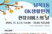 한국시사경제 울산취재본부 | 울산 동구는 오는 11월 5일 오후 2시부터 4시까지 옥류공원에서 ‘남목1동 OK생활민원 현장서비스의 날’ 행사를 개최한다. 이번 행사는 올해 여덟 번째로 열리는 OK생활민원 현장서비스의 날 행사로 주민들의 일상생활 속 불편 해소와 삶의 질 향상을 위한 다양한 분야로 구성했으며, 이번 행사 운영을 위해 자원봉사자, 민간 기술자, 관계 공무원 등 90여 명이 참여한다. 서비스 분야는 총 8개로 주민 편익(칼갈이, 분갈이, 자전거 수리, 안경 및 귀금속 세척), 건강관리(심혈관질환, 비만 예방, 치매 예방), 구정 홍보(탄소중립 생활 실천 홍보), 생활안전(심폐소생술 체험, 소화기 사용 체험), 생활 상담(구민 고충 상담), 동 특화사업(이웃사랑 실천! 복지사각지대 없는 행복 남목1동) 등이 있다. 유료 체험 부스로는 반려식물 키우기 체험이 마련되는데, 1인당 1개만 가능하며 빈 화분을 지참해야 하고 체험비는 현금으로 받는다. 2025년 OK생활민원 현장서비스의 날 전체 일정 및 남목1동 행사 정보는 울산 동구청 홈페이지[알림사항]에서 확인 할 수 있다.