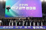 한국시사경제 울산취재본부 | 29일 서동욱 남구청장, 이상기 남구의회의장이 태화강 1둔치에서 열린 2025 남구 강변영화제 개막식에 참석하여 내빈과 함께 터치버튼을 누르며 개막을 축하하는 포퍼먼스를 하고 있다.