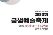 한국시사경제 윤경수 기자 | 부산시 금정구가 주최하고 금정구 문화예술인협의회(회장 도태근)가 주관하는 10월 31일부터 11월 9일까지 금정문화회관 은빛샘홀, 금샘미술관 전시실, 야외광장에서 ‘제30회 금샘예술축제’를 개최한다. 금샘예술축제는 국악·무용·문인·미술·사진·서예·연극·연예인·음악 등 9개 협회로 이루어진 금정구 문화예술인협의회에서 주관하는 지역대표 문화예술축제로, 30년째 매년 가을, 금정구 예술인들의 수준 높은 공연과 전시로 금정구 문화예술의 품격을 높여온 순수 종합예술축제다. 10월 31일 금정문화회관 은빛샘홀에서 개막 공연인 연극협회의 ‘늙은 자전거’를 시작으로, 11월 1일 음악협회의 ‘금샘열린음악회’, 11월2일 연예인협회의 ‘금정구민 현장노래방’이 진행된다. 아울러, 10월 31일부터 11월 9일까지 금샘미술관 전시실과 야외광장에서 서예협회의 ‘금정구서예인협회전’, 사진협회의 ‘금샘사진전’, 문인협회의‘깃발시화전 '파란 하늘 아래 시어가 펄럭이다'’이 진행된다. 올해 예술제에 참여하지 않은 국악협회, 무용협회와 미술협회는 내년에 더욱 풍성하게 준비하여 참여할 예정이다. &nb