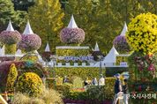 한국시사경제 윤경수 기자 | 열흘 대장정의 반환점을 돈 '제22회 익산 천만송이 국화축제'가 관광객 발길을 당기며 성공적인 흥행을 이어가고 있다. 28일 익산시에 따르면 축제 개막일인 지난 24일부터 27일까지 4일간 전국 각지에서 31만 명이 방문, 축제장인 중앙체육공원 일대는 발 디딜 틈 없이 북적였다. 특히 주말 저녁에는 토크콘서트와 불꽃놀이가 어우러지며 분위기를 한층 끌어올렸고, 밤하늘을 수놓은 야경과 대형 조형물은 사회관계망서비스(SNS) 인증사진 명소로 등극했다. 올해로 22회를 맞은 국화축제는 11월 2일까지 '익산 백제, 국화로 꽃피우다'를 주제로 열린다. 백제문화의 고즈넉한 아름다움을 국화 조형물로 풀어낸 점이 특징이다. 8m 높이의 봉황을 비롯해 백제금종, 미륵사지 석탑, 나비그네 등 국화 조형물은 낮과 밤을 가리지 않고 기념사진을 찍는 관람객에게 인기를 끌고 있다. 특히 밤에는 빛 조형물이 어우러진 '천사의 계단', 무지개 수변길 등 감성적인 야경 명소가 인기를 끌며 젊은층의 방문 비중도 눈에 띄게 늘었다. 축제는 전시 중심에서 체험 중심의 참여형 복합축