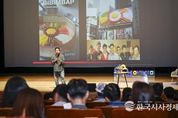한국시사경제 윤경수 기자 | 남원시는 지난 10월 21일 오후 7시, 춘향문화예술회관 대공연장에서 대한민국 홍보 전문가로 널리 알려진 서경덕 교수를 초청해 “세계를 향한 무한도전”이라는 주제로 플레이(Play)남원 아카데미를 개최했다. 이번 강연은 대한민국을 세계에 알리는 다양한 프로젝트를 이끌며 30여 년간 활약해 온 서경덕 교수가 그간의 경험을 바탕으로 세계화 시대를 살아가는 데 필요한 마음가짐과 도전 정신의 중요성을 시민들과 함께 나누는 뜻깊은 시간이었다. 서 교수는 “작은 생각 하나가 국가를 알리는 큰 계기가 될 수 있다”라며, 대한민국 콘텐츠를 세계 속에 전하는 실천적 방법과 문화홍보 전략을 본인의 경험담에 비추어 생생하게 들려주어 참석자들의 큰 호응을 얻었다. 한 시민은 “대한민국이라는 국가의 일원으로서 자부심을 느끼는 시간이었으며, 나 자신도 지역을 알리는 역할을 하고 싶다는 용기를 얻는 소중한 시간이었다”라고 소감을 전했다. 이번 행사에는 시민뿐 아니라 남원시 공직자와 청년층 등 다양한 세대가 참여해, 세계 속 한국의 위상과 문화 홍보의 의미를 함께 되새기는 자리가 됐다.