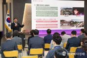 한국시사경제 윤경수 기자 | 김해시는 22일 오전 9시 시청 대회의실에서 홍태용 시장이 직원들을 대상으로 ‘글로컬시티 김해를 위한 도시대전환’을 주제로 강연했다고 밝혔다. 이번 특강에는 시청 각 부서 주무팀장 이상 간부공무원과 출자・출연기관(김해연구원, 김해시도시개발공사, 김해의생명산업진흥원, 김해복지재단, 김해문화관광재단)의 기관장과 임원 등 220여명이 참석했다. 이 자리는 민선8기 홍태용 김해시정이 주력해온 지속성장을 위한 도시대전환 추진사항과 미래비전을 공유하고 확산하기 위해 마련됐다. 홍 시장은 도시대전환의 기틀을 마련하기 위해 추진해 온 ‘산업구조 재편’, ‘3대 메가이벤트 성공 개최’, ‘글로컬 대학 유치’, ‘도시 상징자본 전환’, ‘대성동고분군 유네스코 세계유산 등재 및 세계유산 통합관리기구 유치’, ‘탈틀라스틱 정책’ , ‘주요 도로망 개통’ 등 민선8기의 주요 정책을 설명하고, 향후 도시대전환의 완성을 위해 반드시 필요한 양대 정책으로 ▲북극항로 연계 국가스마트물류플랫폼 유치, ▲첨단산업 인프라 구축(미래자동차, 물류・로봇・반도체, 의생명, 액화수소)를 꼽았다. 또한, 지방소멸과