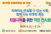 한국시사경제 윤경수 기자 | 화순군은 제18회 치매 극복의 날(9. 21.)을 맞아 오는 15~24일까지 치매 극복 주간으로 정하고 치매여도 안심할 수 있는 사회를 만들기 위해 다양한 행사를 개최한다. 이번 치매 극복 주간 행사는 ▲치매 극복의 날 기념 작은 전시회 ▲찾아가는 치매예방교실 ▲치매 극복 캠페인 등 다채로운 행사로 구성된다. 치매 극복의 날 기념 작은 전시회는 화순군 치매안심센터 1층 로비에서 열리며 치매 프로그램에 참여했던 치매 환자와 가족들의 작품을 행사 기간(15~24일)에 전시한다. 치매예방교실은 화순읍 나드리복지관에서 오는 15일 오후 2시부터 3시까지 등록 수강생을 대상으로 운영한다. 이번 프로그램에서는 전문 강사를 초빙하여 웃음 치료 프로그램을 진행할 예정이다. 또한, 치매 극복 캠페인으로 치매에 대한 지역 주민들의 부정적 인식 개선 및 치매 조기검진의 중요성을 홍보하기 위해 오는 23일 오전 9~11시까지 화순 고인돌 전통시장에서 실시할 예정이다. 박미라 보건소장은 이번 행사를 통해 “치매여도 안심할 수 있는 사회, 함께 사는 따뜻한 화순을 만들기 위해 적극