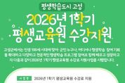 한국시사경제 윤광희 기자 | 고성군은 군민들에게 폭넓은 평생학습의 기회를 제공하고, 다양하고 전문적인 평생학습 프로그램 참여로 함께 배우고 성장하고자 ‘2026년 1학기 평생교육원 수강료 지원사업’을 시행한다. 이번 지원사업은 전국 대학교 평생교육원에 2026년 1학기 등록을 마친 고성군민을 대상으로 한다. 지원 금액은 수강료의 50%(1인당 최대 10만 원)이며, 저소득층, 장애인, 국가유공자 등 취약계층에게는 수강료의 70%(1인당 최대 15만 원)까지 확대 지원된다. 단, 사이버 강의 및 학점인정제 과정은 지원대상에서 제외된다. 신청을 원하는 군민은 해당 평생교육원의 수강 신청을 완료한 뒤, 신청서와 통장 사본을 교육청소년과 평생학습담당(직접 방문, 우편, 이메일 중 택일)으로 제출하면 된다. 신청 서식은 고성군청 홈페이지 또는 각 평생교육원 사무실에서 확인할 수 있다. 접수된 신청서는 4월 중 지원대상자를 선정하여 개별적으로 안내될 예정이며, 수강 종료 후 수료 여부를 확인한 후, 수료자에 한해 지원금이 지급된다. 군 관계자는 “배움에 대한 군민들의 의지