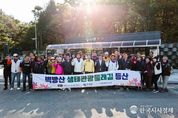 한국시사경제 윤광희 기자 | 고성군은 11월 14일 고성문화원 소속 회원 50여 명이 참여한 가운데 벽방산 산행 행사를 성공적으로 마쳤다고 밝혔다. 이번 산행에 이상근 군수도 현장에 직접 참석해 산악회원들과 소통의 시간을 가졌으며, 등산객들은 벽방산의 자연환경과 경관을 함께 체험하고, 산행을 통해 지역 산악 관광 활성화 방안에 대한 다양한 의견을 군 관계자에게 전달했다. 특히 지역 산악회 회원들은 산행로 정비, 안전시설 보강, 벽방산 생태자원을 활용한 체험 프로그램 확대 등 현장 경험에 기반한 실질적인 의견을 제시했고, 고성군은 이번 산행에서 제시된 의견을 수렴하여 향후 산악관광 활성화에 적극 반영할 계획이다. 이상근 고성군수는 “고성군 최고봉(해발 650m)인 벽방산에 지역 산악회와 등산객들의 다양한 의견을 수렴하여 생태관광 인프라 확충을 위해 노력하겠으며, 주민 중심 생태관광지 개발을 통해 많은 군민과 관광객들이 고성의 자연을 안전하고 쾌적하게 즐길 수 있도록 지원하겠다”라고 밝혔다.