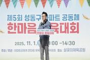 한국시사경제 윤광희 기자 | 서울 성동구는 지난 11월 1일 살곶이체육공원에서 성동구 아파트 단지들이 한자리에 모여 ‘제5회 아파트공동체 한마음 체육대회’를 성황리에 개최했다. 올해로 5회째를 맞는 이번 체육대회는 성동구 아파트공동체 활성화단체 연합회(성아공 연합회)가 중심이 된 아파트공동체 한마음 체육대회 추진위원회 주관으로 진행됐으며, 성동구청과 각 아파트 공동체 활성화단체가 협력하여 원활한 행사 진행을 지원했다. 성동구가족센터, 옥수종합사회복지관 등 관내 복지시설에서는 다양한 체험부스 등을 운영했다. 체육대회는 관내 32개 아파트에서 약 650명의 입주민이 참여하여, 각기 다른 아파트 단지 주민들이 4개의 팀을 이뤄 협력과 경쟁을 즐기는 방식으로 진행됐다. 참가자들은 풍선 기둥 만들기, 한마음 공굴리기 등 가족과 이웃들이 함께 즐길 수 있는 스포츠 종목에 참여도 하고, 입주민 장기 자랑, 아이들을 위한 키즈존, 푸드트럭 등 다양한 볼거리, 먹을거리 등으로 즐거운 시간을 보냈다. 특히, 이번 체육대회는 단순히 스포츠를 즐기는 것을 넘어, 아파트 단지 내 주민들 간의 유대감을 깊게 만드는 기회가 됐다. 경기가