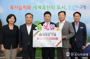 한국시사경제 윤광희 기자 | 진주시는 23일 한국지방재정공제회로부터 특별재난지역 재해복구 재정지원금 1억 원을 전달받았다고 밝혔다. 이날 시청 소회의실에서 열린 전달식에는 조규일 진주시장, 임묵 공제회 공제사업본부장 등 관계자 10여 명이 함께 자리했다. 공제회는 행정안전부 산하기관으로서 전국 지방자치단체 및 출자⦁출연기관을 대상으로 다양한 재정지원 사업을 시행하고 있다. 이번 지원금은 특별재난지역으로 선포된 지자체를 대상으로 전년도 건물·시설물 재해복구 공제회비의 30%를 재정 지원하는 사업에 따라 지급된 것이다. 앞서 진주시는 지난 7월 기록적인 집중호우로 인해 공공시설과 주택, 농경지 침수 등의 큰 피해가 발생해 8월 6일 특별재난지역으로 추가 지정된 바 있다. 재정지원금은 폭우피해 시설물 등의 복구와 수해민 생활안정을 위해 쓰일 예정이다. 조규일 진주시장은 “지방재정 발전을 위해 힘써주시는 한국지방재정공제회의 관심과 지원에 감사하다”며 “지원금은 집중호우로 피해를 입은 시설물과 건물 등의 복구에 유용하게 사용하겠다”고 말했다.