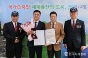 한국시사경제 윤광희 기자 | 고성군은 11월 13일, 군수실에서 6·25전쟁에 참전해 공을 세운 故 윤유도 병장의 유가족에게 국방부장관을 대신하여 화랑무공훈장을 전달하는 전수식을 가졌다. 故 윤유도 병장은 6·25전쟁 당시 수도사단 1연대 소속으로 공을 세워 1953년 6월 무공수훈자로 결정됐음에도 전후 혼란한 상황으로 훈장을 받지 못했으나, 국방부에서 추진하고 있는 ‘6·25전쟁 무공훈장 찾아주기 사업’을 통해 70여년이 지나 유가족에게 전달 됐다. 이상근 고성군수는 “나라를 위해 헌신한 故 윤유도 병장의 전공을 기리고 늦게나마 유족에게 직접 훈장을 전해 드릴 수 있어 기쁘고 영광스럽다”라며, “조국의 자유와 평화를 위해 목숨을 바친 영웅들의 희생이 헛되지 않도록 유공자 예우에 최선을 다하겠다”라고 전했다. 유가족은 “오랜 시간이 지났지만 나라를 위해 헌신하신 분들을 잊지 않고 명예를 찾아주시고, 뜻깊은 자리를 마련해주신 국가와 고성군에 감사드린다”라고 말했다.