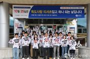 한국시사경제 이정이 기자 | 영양군은 10월 24일 오전 독도의 날을 기념해 군청사 입구에서 오도창 영양군수를 포함한 공직자 60여 명이 참석한 가운데 ‘독도 사랑 티셔츠 입기 운동’행사를 진행했다. 영양군의 공직자들부터 앞장서서 독도 사랑 티셔츠를 입고 근무하면서 독도의 날 의미를 되새기고, 온 국민 하나 되기 운동에 동참하는 모습을 보였다. 이날 행사는 지난 1900년 10월 25일 대한제국의 고종황제가 독도를 울릉도에 편입시키는 칙령 제41호를 반포한 역사적으로 뜻깊은 날을 기념하기 위해 직원들 모두 독도 사랑 티셔츠를 입고 태극기를 손에 들고 우리 땅 독도 지키기 운동에 앞장설 것을 다짐하는 계기가 됐다. 오도창 영양군수는 “독도의 날 행사를 통해 영양군민 모두가 독도에 대한 더 많은 관심과 애정을 가졌으면 한다.”라며 “‘독도 사랑 티셔츠 입기 운동’은 알고는 있지만 행동으로 실천하기 힘든 독도 사랑을 이번 기회를 통해 나타내며, 공직자부터 먼저 독도사랑에 앞장서는 모습을 보여줌으로써 우리 고유 영토의 소중함을 다시금 되새기는 순간이 됐길 바란다.”라고 말했다.