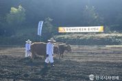 한국시사경제 이정이 기자 | 강원특별자치도와 홍천군이 공동 주최하고, 홍천 겨리농경문화 보존회가 주관한 ‘2025년 도지정 무형유산 「홍천 겨리농경문화」 공개행사’가 10월 22일, 홍천군 화촌면 구성포리 681번지 일원에서 성황리에 개최됐다. 이번 행사는 도지정 무형유산으로 지정된 ‘겨리농경문화’의 대중적 이해와 보존 활성화를 위해 기획됐으며, 홍천농업고등학교 교장 및 학생 30여 명을 포함한 지역 주민 다수가 참석해 성황을 이뤘다. 행사에서는 두 마리 소와 사람이 협력해 쟁기를 끄는 전통 농법인 ‘겨릿소 밭갈이’ 시연이 진행됐고, 관람객이 직접 참여할 수 있는 소몰기, 소모는 소리 체험 등 전통 농경문화 체험 프로그램도 운영되며, 큰 호응을 얻었다. 특히, 이번 공개행사는 홍천 겨리농경문화 보존회 회원들이 전수장학생으로 지정된 이후 처음 열리는 행사로, 지역 주민과 학생들이 함께 어우러져 세대 간 전통문화 전승의 의미를 되새기는 뜻깊은 자리가 됐다. 행사에 참석한 홍천농업고등학교 관계자는 “직접 보고 듣고 참여할 수 있어 전통 농업기술을 생생하게 배우는 소중한 경험이 됐다”라며, “이러한 현장