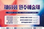 한국시사경제 이정이 기자 | (사)원주예총은 오는 10월 16일부터 11월 2일까지 원주시 댄싱공연장 주차장 상설공연장과 치악예술관 전시실 등 원주 전역에서 시민과 함께하는 ‘제61회 원주예술제’를 개최한다. 올해로 61회를 맞이한 원주예술제는 지역 예술인들의 창작열과 예술혼이 어우러진 종합 예술축제로, 예술로 하나 되는 시민 화합의 장이자 원주의 대표 문화예술 축제로 자리매김하고 있다. 축제 기간 동안 원주예총 산하 7개 협회가 참여하여 사진, 미술, 문인, 연극, 국악, 음악 등 다채로운 전시와 공연을 선보이며, 원주의 가을을 풍성한 예술의 향기로 물들일 예정이다. 특히 개막식에서는 국악협회 공연을 시작으로 시낭송, 바이올린 연주, 대금과 발레, 전통·현대무용, 금관5중주, 퓨전국악팀 ‘작심’의 무대까지 다채로운 프로그램이 이어진다. 마지막 순서로는 출연자와 관객이 함께 노래를 부르며 예술로 하나 되는 특별한 순간을 선사할 예정이다. 박혜순 문화예술과장은 “61년의 역사와 전통을 이어온 원주예술제는 예술인과 시민이 함께 만들어가는 축제이자, 원주의 문화적 저력을 보여주는 상징적인 행사”라며, “