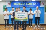 한국시사경제 전남취재본부 | 여수시는 지난 4일 시청 시장실에서 여수충무고등학교 수영부 선수단에게 학교 운동부 창단지원금 2천만 원을 전달했다. 이번 지원금은 여수충무고 수영 엘리트 꿈나무들의 역량 강화를 위해 훈련용품 구입비 등으로 사용될 예정이다. 여수충무고는 2024년 파리올림픽 국가대표이자 접영 200미터 한국 신기록 보유자인 김민섭 선수의 모교로 올해 수영부가 새롭게 창단됐다. 현재 국가대표 감독 출신인 안종택 코치의 지도 아래 5명의 수영 꿈나무가 제106회 전국체육대회 출전을 앞두고 훈련에 매진하고 있다. 양건우 여수충무고 교장은 “수영부를 위해 고가의 훈련용품 구입비를 지원해 주셔서 감사하다”며 “학생들이 안정적으로 훈련할 수 있도록 학교에서도 행정적 지원을 아끼지 않겠다”고 말했다. 명경식 여수시체육회장은 “어려운 여건 속에서도 수영부를 창단해준 학교 측에 감사드린다”며 “학생들이 각종 대회에서 메달을 획득하고 미래 국가대표 선수로 성장해 여수를 빛낼 수 있기를 기대한다”고 말했다. 정기명 여수시장은 “여수한려초-여수문수중에는 수영부가 있지만 고등학교에는 없
